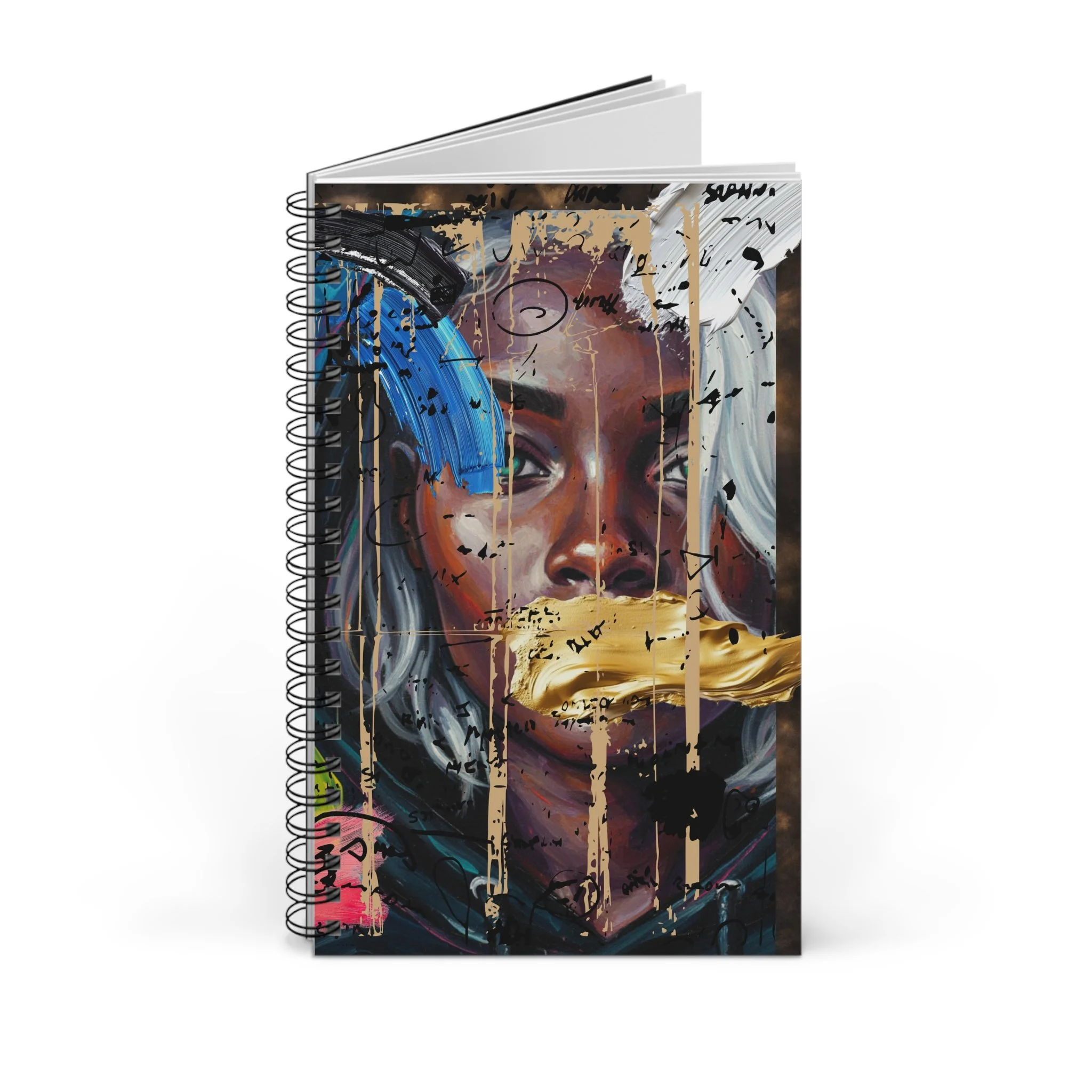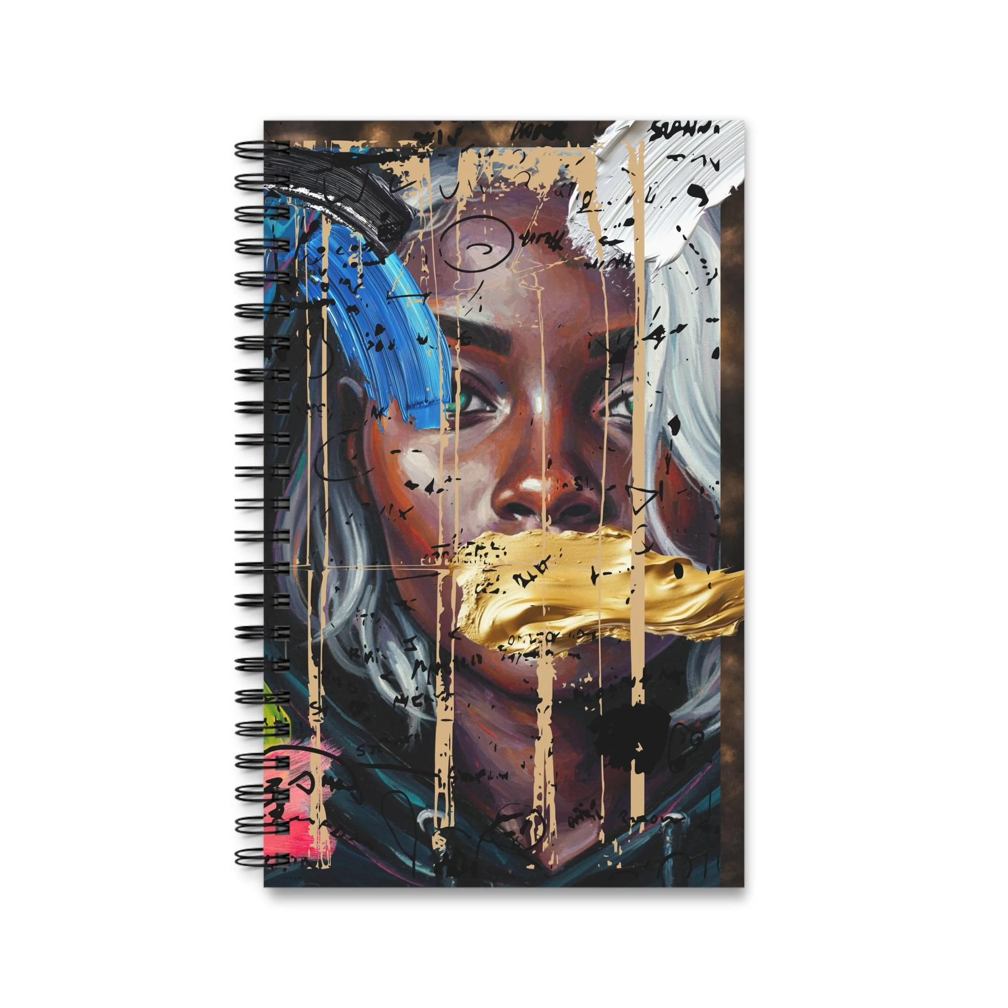 This spiral journal brings bold, street-art energy to everyday notes. The front cover features a striking mixed-media portrait layered with paint strokes, drips, and handwritten marks — a visual prompt that invites brave, unfiltered thought. Inside, 160 pages of lined 90gsm paper take ink and pencil effortlessly, whether you’re sketching ideas, mapping a project, or tracking daily intentions. The semi-gloss laminated cover protects those vibrant colors while the sturdy spiral binding lets the book fold flat for easy writing. Compact enough to carry to cafes or studio sessions, it feels like a small, wearable gallery for your private creative work.